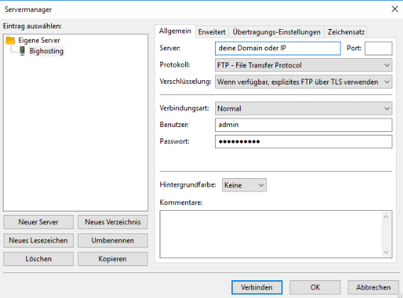 - Server: Domain oder IP eingeben